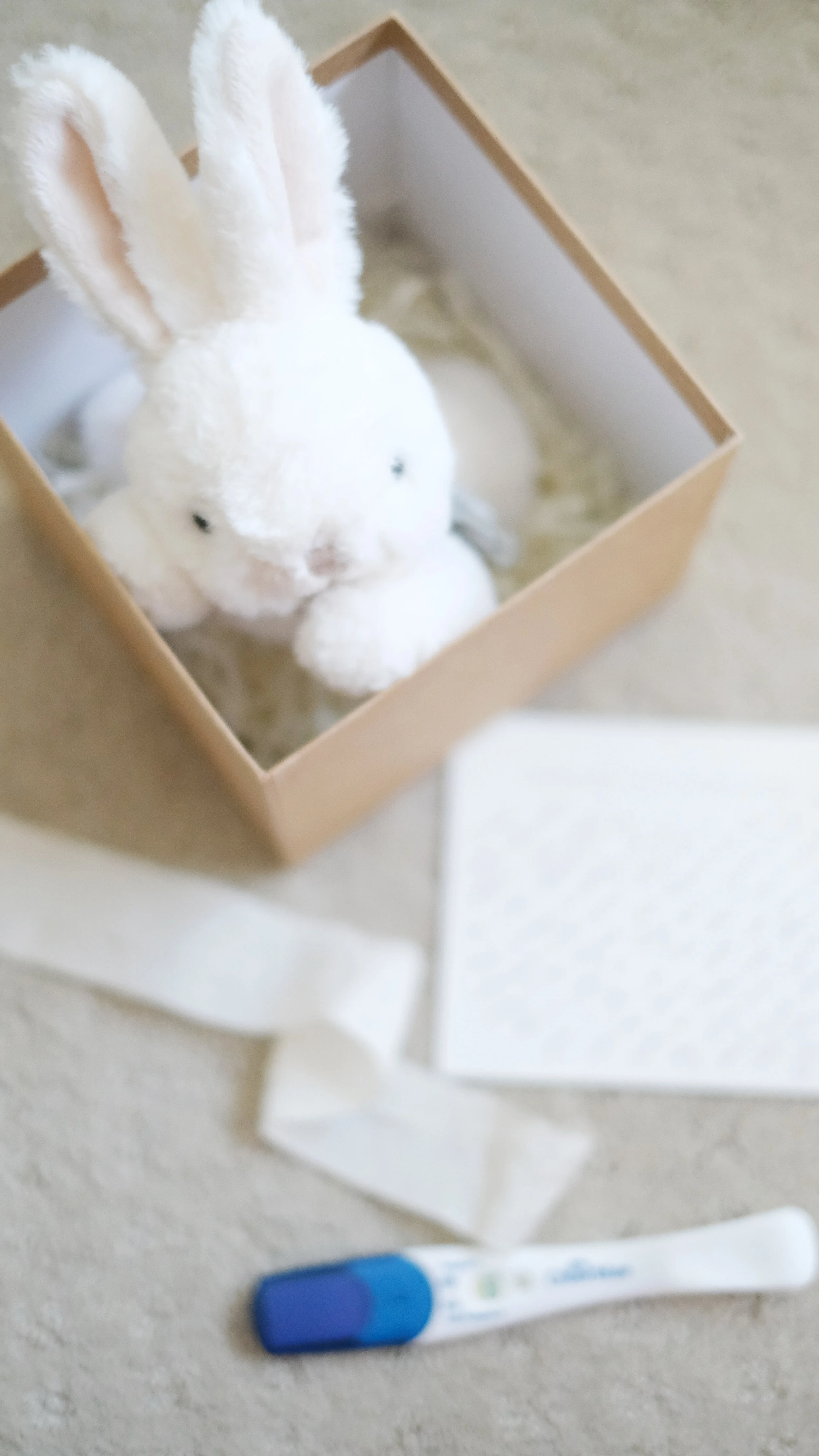 I immediately began to think of how I would tell James when he came home. I left for Michaels to buy a small box to put together the surprise, all the while smiling the biggest smile ever as I drove. Inside the box I included the pregnancy test, a small stuffed animal bunny (we had bought it on our last trip to France to one day give to our baby), and I wrote him a letter sharing the wonderful news that he was going to be a father.
