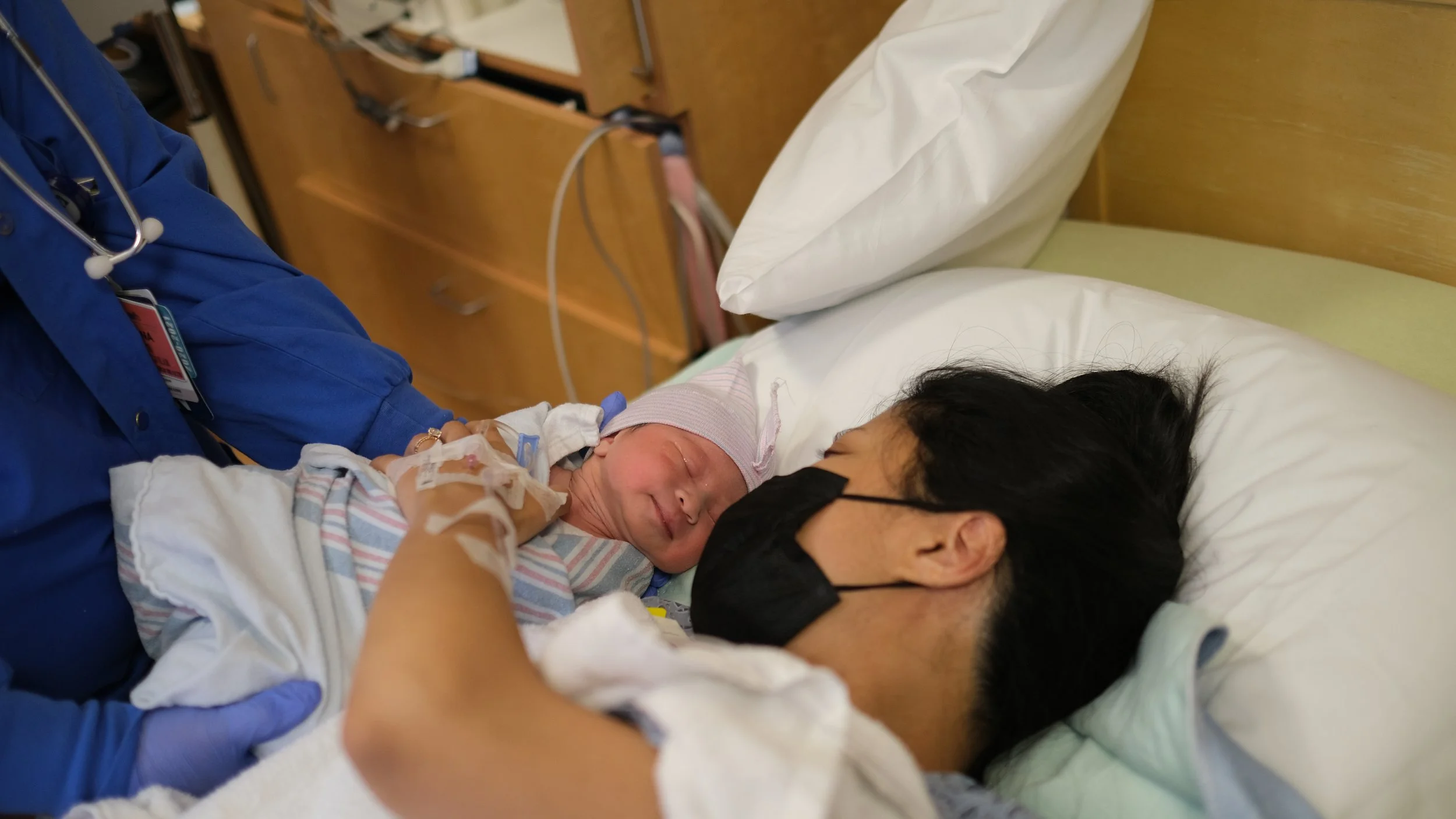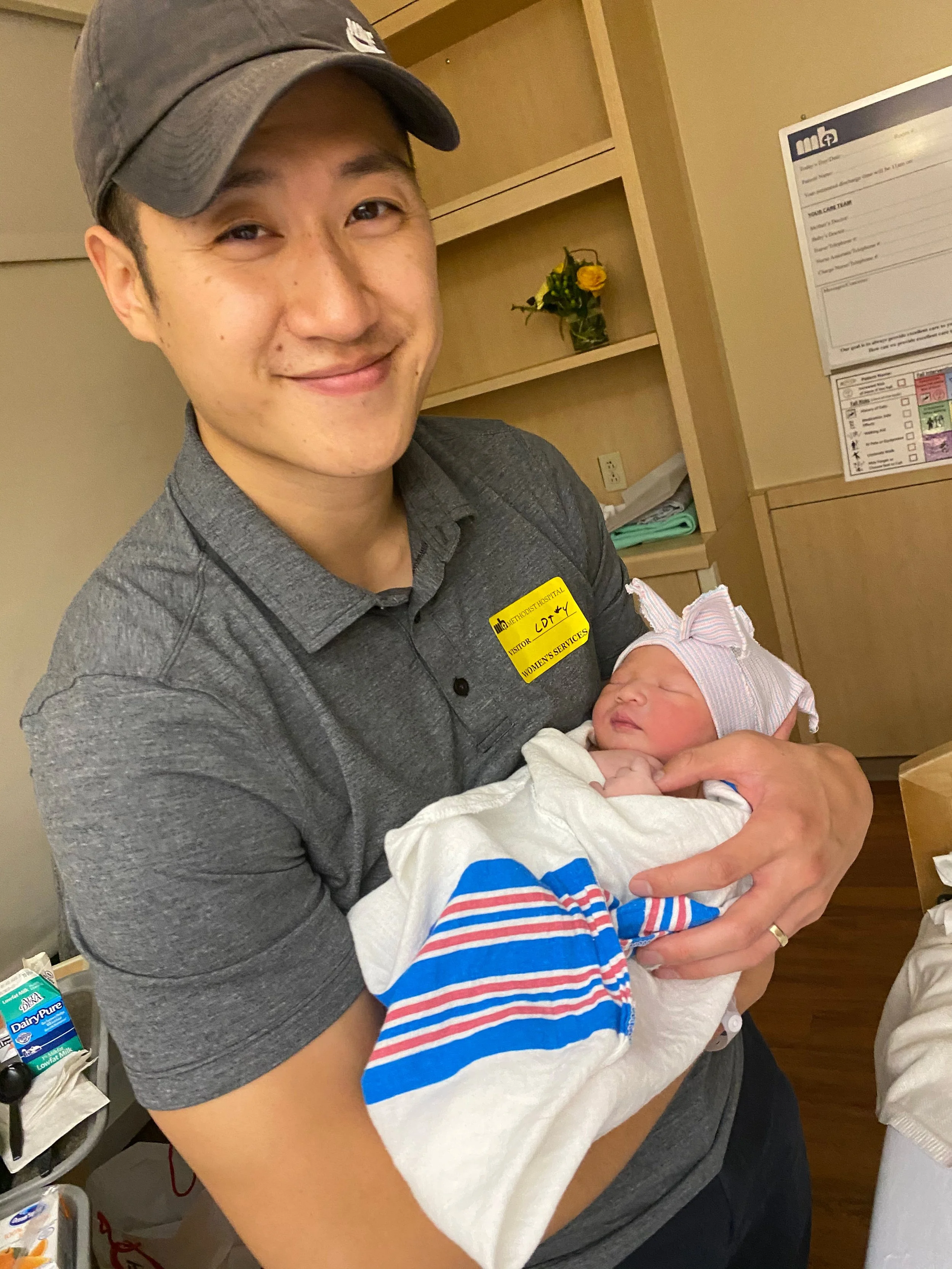 After a couple pushes, my doctor cautioned me to push more gently as baby girl’s heart rate had dropped slightly. It was difficult to breathe with a mask (yes, we were required to wear masks throughout delivery due to covid), but I was so focused on just bringing in this baby into the world. After a few more gentle pushes, she arrived and breathed her first full breath. Our daughter was born and she was absolutely perfect in every way.